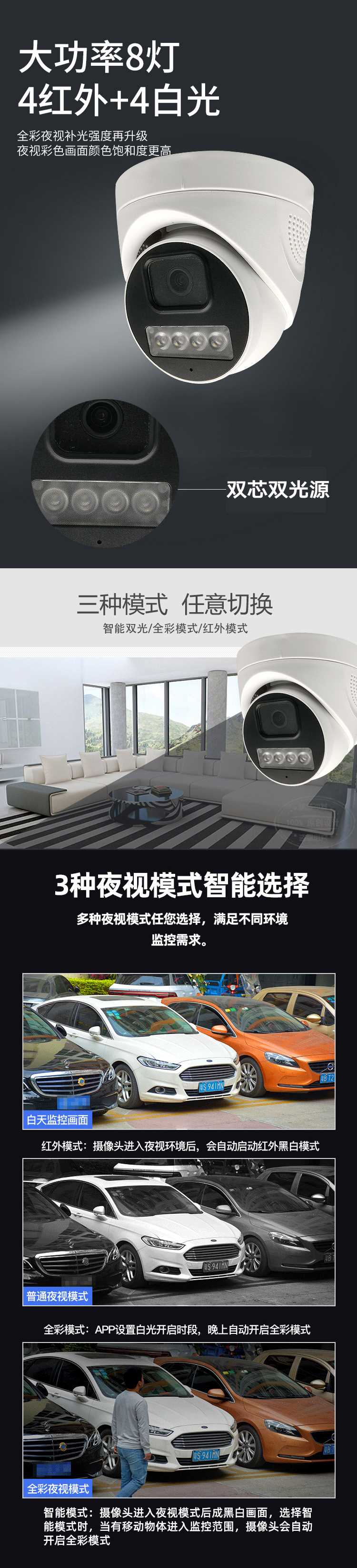 特点:400万高清摄像头,性价比高,色彩还原度高。半球和枪机可选。