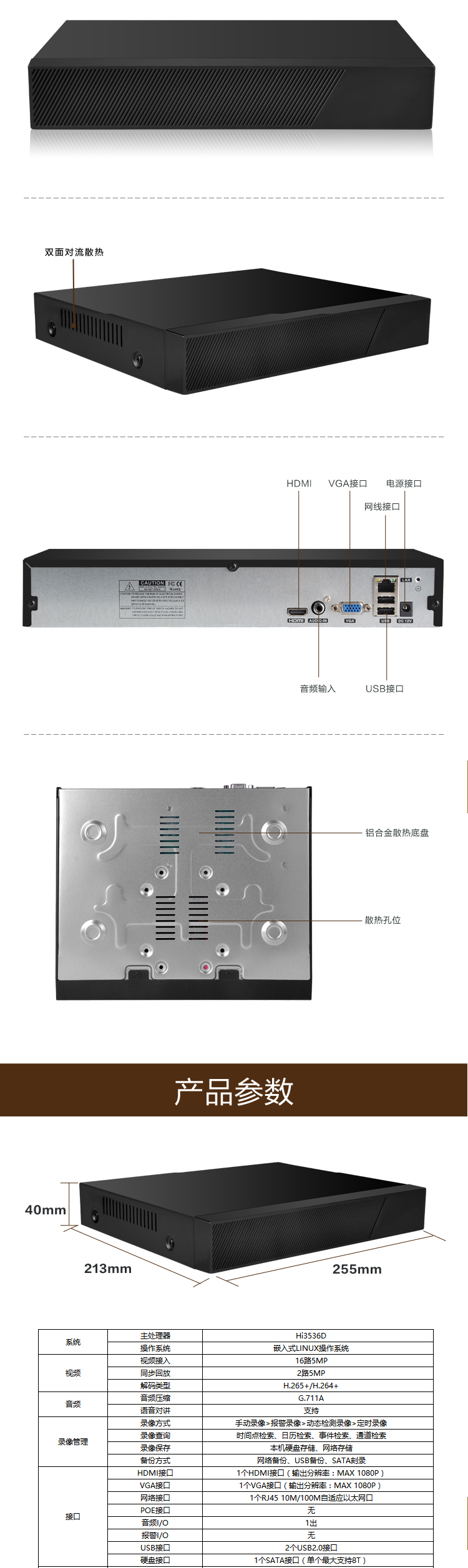 1、兼容硬盘录像机功能,单盘最大支持14T